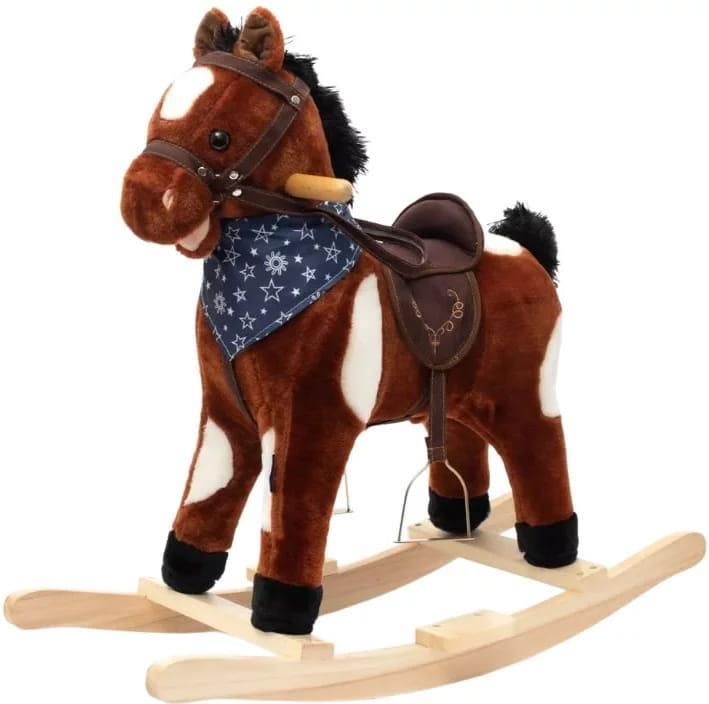 Baby Mix - koń na biegunach Kolor/wzór: Artur Koń na biegunach to zabawka, o której marzy każde dziecko. Jeśli chcesz spełnić marzenie swojej pociechy, sprawić jej radość i dać wiele godzin szalonej zabawy, Baby Mix koń na biegunach będzie idealnym zakupem. Siedzisko z miękkiego, puszystego materiału, solidne, drewniane płozy do bujania, oraz wgrane multimedia pozwolą Twojemu dziecku bawić się z użyciem wyobraźni. Do włączenia dźwięków potrzebne są baterie AA 1,5 V, które nie są dostępne w zestawie. Najważniejsze cechy i funkcje konika na biegunach Baby Mix: Wytrzymałe płozy z możliwością demontażu; miękkie i wygodne siodło; dźwięki włączane poprzez przytrzymanie ucha konia; baterie 3x AA 1,5 V; maksymalna waga dziecka: 25 kg Specyfikacja Wysokość konia z płozami 72 cm Szerokość listewek 28 cm Długość konia 55 cm Wysokość siedziska od ziemi 50 cm Szerokość siedziska 16 cm Waga konia 2 kg