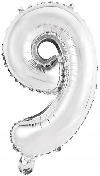 Balon Foliowy Mini Cyfra 9 Srebrna 30X40Cm Olkusz