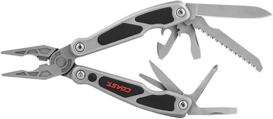 MULTITOOL COAST LED130 Multitool LED130 zawiera w sobie aż 14 elementów a mimo wszystko jest niezwykle kompaktowy. Niewielki rozmiar sprawia, że może być przypięty do kluczy oraz bez wątpienia zmieści się w kieszeni.Narzędzie zawiera: Sprężynowe szczypce z nożem do drutu, ostrze noża, wbudowana dioda LED, brzeszczot, otwór na linkę, końcówki wkrętakowe Phillipsa (1) i płaskie (3), otwieracz do butelek, szczypce do zdejmowania izolacji, szydło, pilnik do paznokci, otwieracz do puszek, 2 baterie CR927.Dzięki zaangażowaniu marki Coast w jakość, narzędzie wielofunkcyjne LED130 jest objęte 5-letnią gwarancją firmy Coast na wady materiałowe i konstrukcyjne. Funkcje i zalety: Łatwy dostęp Wszystkie narzędzia są łatwo dostępne. Mechanizm sprężynowy Narzędzie wyposażone jest w specjalny mechanizm sprężynowy, który umożliwia obsługę jedną ręką. Wbudowane światło LED Wbudowana dioda LED na końcu narzędzia wielofunkcyjnego z łatwością ułatwi oświetlenie powierzchni roboczych. Specyfikacja: Materiał: Stal nierdzewna 3CR13Długość ostrza noża: 5,1 cmDługość po złożeniu: 7,6 cmBaterie: 2 x CR927 (w zestawie)Waga: 122 G