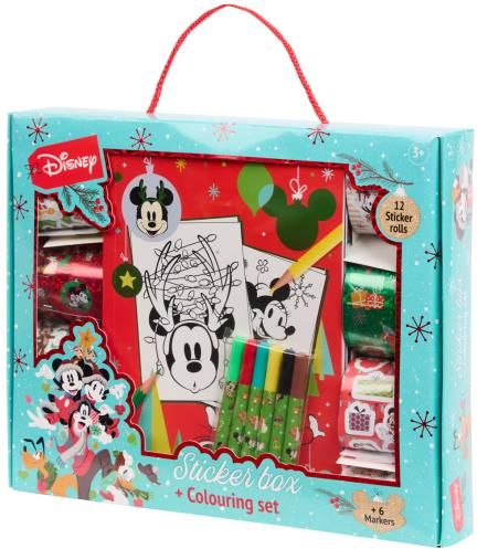 Kolorowanka świąteczna z naklejkami Disney Miki 3+ Świetny prezent dla każdego małego pasjonata rysunku. Z kolorowankami, 12 rolkami naklejek i 8 markerami Wybierz swój ulubiony motyw Disneya Specyfikacja: Wiek: 3+
