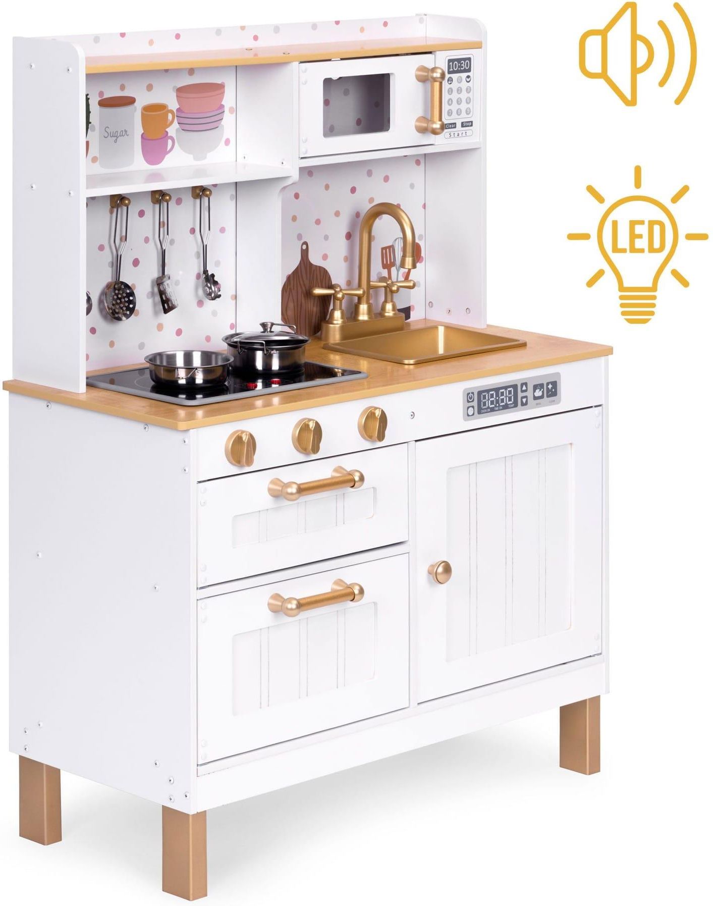 Ecotoys Kuchnia Dla Dzieci Z Dźwiękami I Led Drewniana Duża Otwierane Szafki 7 Akcesoriów Olkusz