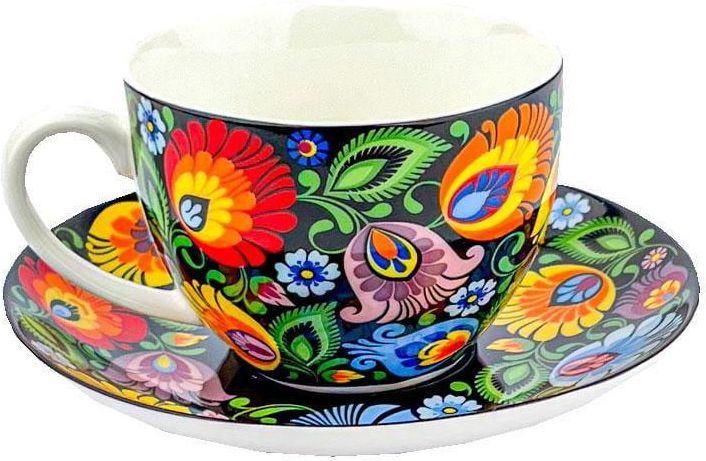 Folkstar Filiżanka Folk 220Ml W Pudełku Wzory Łowickie Czarna (26483) Olkusz