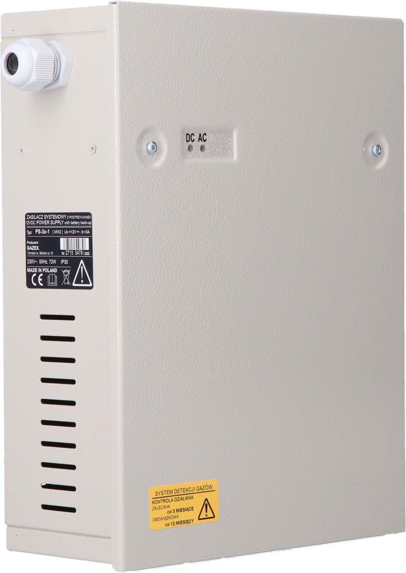 Zasilacz systemowy PS-3X-1 12V, max 3A, miejsce na akum., możliwość wyposażenia w dodatkowy moduł (PS3-MR) monitorujący stan napięć o numerze katalogowym PS-3X-1 w kategorii Zasilacze i akcesoria do detektorów gazów stacjonarnych, Detektory gazów. Produkt wyprodukowany przez markę GAZEX, seria PS. …