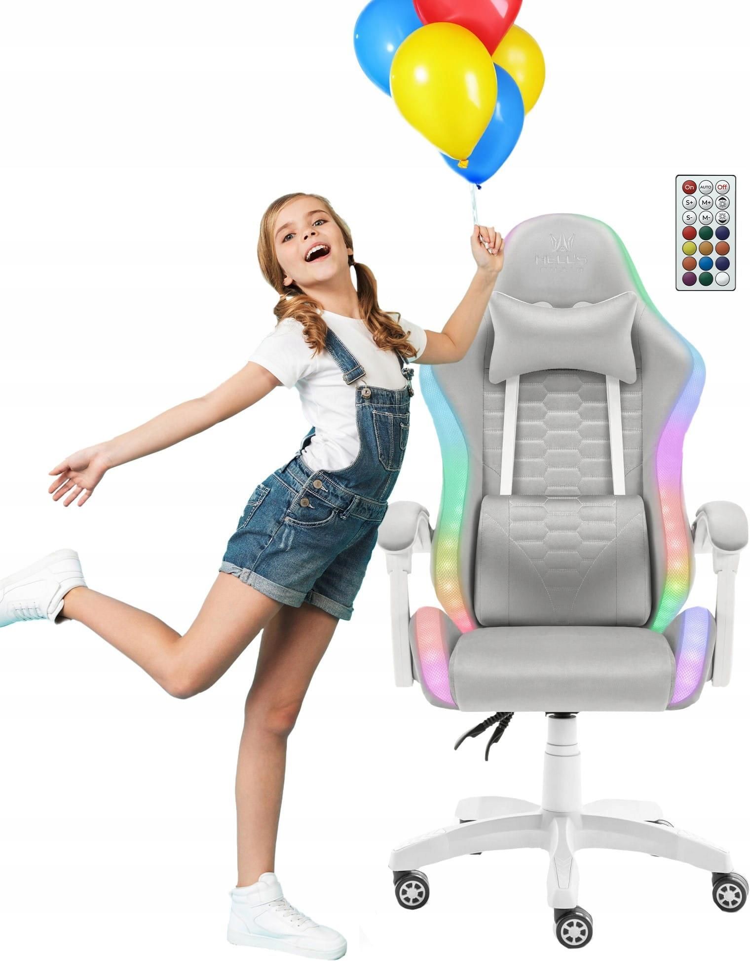 Hell's Chair Junior HC-1000 Led Szary - Biały Tkanina Olkusz