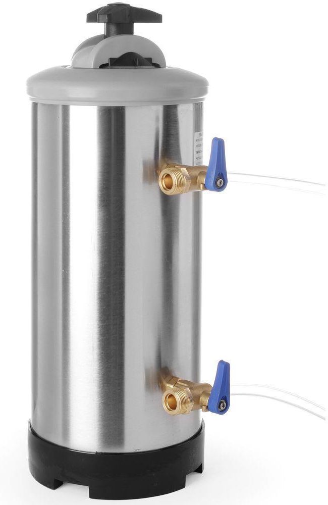 Uzdatniacz wody to urządzenie do zmiękczania wody. Uzdatnianie jest procesem, podczas którego z wody usuwane są wszystkie związki wapnia i magnezu odpowiedzialne za twardość wody. Podczas przepływu wody przez kolumnę ze złożem, jony wapnia i magnezu zostają zaabsorbowane przez cząsteczki żywicy. Gdy zdolność jonowymienna złoża żywicy wyczerpie się, należy wywołać proces regeneracji, podczas którego złoże jest poddawane procesowi regeneracji za pomocą roztworu soli regeneracyjnej. Zmiękczacz do wody może być zainstalowany wszędzie tam, gdzie temperatura wody jest niższa niż 45oC, a ciśnienie wejściowe wody nie przekracza 2 bar. Optymalne ciśnienie robocze wody to 1-2 bar. Do regeneracji stosować należy wyłącznie sól niejodowaną. Uzdatniacz wyłącznie do wody pitnej. Urządzenie odpowiednie do zmiękczania wody do ekspresów do kawy, pieców konwekcyjno-parowych, zmywarek i kostkarek do lodów. Dzięki swoim kompaktowym wymiarom idealnie nadaje się do zastosowania w barach, kawiarniach i restauracjach. Zastosowanie podzespołów o najwyższej jakości, gwarantuje bezawaryjne działanie urządzeń przez wiele lat.
