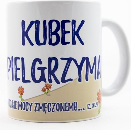 Kubek w kolorze białym z kolorowym nadrukiem i napisem: Bóg dodaje mocy zmęczonemu. Iz 40,29. Materiał: ceramika Wysokość: 95 mm Średnica górna/dolna: 80/80 mm Kubek nadaje się do mycia w zmywarce.