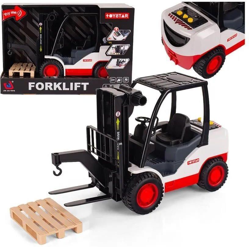 Lena Wózek Widłowy Widlak Podnośnik Regulowany Lena Wózek Widłowy Widlak Podnośnik Regulowany to wyjątkowa zabawka, która doskonale wpisuje się w świat pojazdów do zabawy. To nie tylko świetny sposób na rozweselenie malucha, ale także narzędzie wspierające rozwój motoryczny i kreatywność. Pojazdy takie jak ten wózek widłowy oferują wiele możliwości, dostarczając radości oraz edukacji poprzez interakcję i odkrywanie otaczającego świata. Opis produktu Ten model wykonany jest z wysokiej jakości plastiku, co zapewnia jego trwałość i bezpieczeństwo użytkowania. Dzięki ruchomym elementom, takim jak maszt i podnośnik, zabawa staje się jeszcze bardziej realistyczna. Maluchy mogą przenosić dołączoną paletę, co nie tylko rozwija ich wyobraźnię, ale także pozwala na naukę podstaw transportu i logistyki. Dodatkowo, widlak oferuje efekty dźwiękowe oraz świetlne, co jeszcze bardziej angażuje dzieci w zabawę i nadaje jej dynamiczny charakter. Zastosowanie i funkcje Zabawa z tym modelem sprawdzi się zarówno w domowych warunkach, jak i na świeżym powietrzu. Jest idealnym wyborem do gier angażujących w wyścigi czy naśladowanie pracy pojazdów użytkowych. Interaktywne elementy, takie jak dźwięki i światła, sprawiają, że każda chwila spędzona z tym pojazdem staje się ekscytującą przygodą. Wymiary i waga Chociaż szczegółowe wymiary i waga nie zostały podane, są one istotne dla rodziców przy wyborze zabawki. W przypadku braku tych informacji, warto zwrócić uwagę na inne cechy produktu, takie jak jakość materiałów czy funkcjonalność, które mogą wpłynąć na decyzję o zakupie. Wiek dziecka Ten wyjątkowy model jest przeznaczony dla dzieci powyżej 3. roku życia, co czyni go doskonałym prezentem dla najmłodszych, które dopiero zaczynają swoją przygodę z pojazdami. Również dziewczynki z pewnością będą zachwycone możliwościami zabawy, jakie oferuje ten podnośnik. Zestaw zawiera Warto zwrócić uwagę na zawartość zestawu, która obejmuje: wózek widłowy z ruchomym masztem, paletę do transportu, elementy dźwiękowe i świetlne, które sprawiają, że zabawa staje się jeszcze bardziej atrakcyjna. Te elementy nie tylko zwiększają interaktywność zabawy, ale także umożliwiają dziecku rozwijanie umiejętności manualnych oraz wyobraźni. Zalety zabawki Decydując się na ten model, zyskujesz zabawkę, która: rozwija zdolności manualne i koordynację ruchową, wprowadza dzieci w świat logistyki i transportu, oferuje interaktywne zabawy z efektami dźwiękowymi i świetlnymi, jest bezpieczna i trwała, dzięki zastosowaniu wysokiej jakości plastiku. Dzięki tym cechom, zabawa z widlakiem może dostarczyć dzieciom wiele radości oraz satysfakcji, tworząc niezapomniane chwile podczas odkrywania nowego świata!