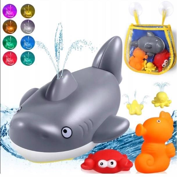 Zabawki do kąpieli zwierzęta morskie interaktywne AAMAZON Zabawki do kąpieli są wykonane z wysokiej jakości materiałów PVC i ABS, które nie blakną po namoczeniu i są nietoksyczne. Zabawki do kąpieli w kształcie konika morskiego i kraba można sterylizować we wrzącej wodzie o temperaturze 100°C, a zabawki do kąpieli w kształcie rekina w wodzie o temperaturze 80°C. Rekiny nie są już okrutne, są urocze i interesujące. Ponadto te zabawki do kąpieli mają wiele ciekawych funkcji. Zabawka do kąpieli w kształcie rekina może emitować wspaniałe światła, odtwarzać interesującą muzykę i ma zabawną funkcję rozpylania wody. Urocza zabawka do kąpieli rekina może odwrócić uwagę dziecka i pozwolić mu się cieszyć. Jasne kolory zabawek do wanny z wodą pomagają ćwiczyć zdolność rozróżniania kolorów dzieci, ćwiczyć czynności rąk dziecka i poprawiać koordynację ręka-mózg. Zestaw zabawek do kąpieli dla niemowląt zawiera rekina, konika morskiego, zabawkę kraba i jest wyposażony w 2 trójkątne dysze, 1 dyszę ośmiornicy, 1 dyszę rozgwiazdy i siatkową torbę do przechowywania. Zabawki do kąpieli nie powinny pozostawać w wodzie dłużej niż godzinę. Proszę wysuszyć je jak najszybciej po użyciu. Zabawa powinna odbywać się pod kontrolom dorosłych Interaktywny rekin wymaga 3 bateri AAA brak w zestawie) Marka: Lictin Wiek dziecka: 6 m + Stan: Nowy