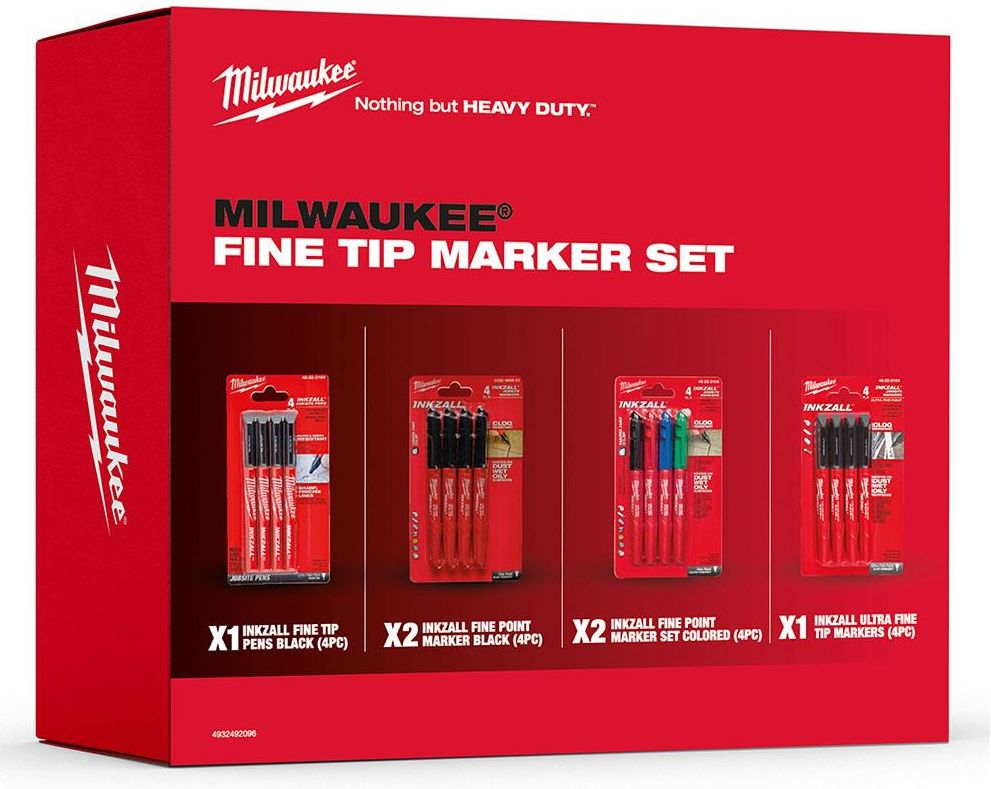 Zestaw markerów 'Milwaukee 4932492096 4932492096 ' Standardowe i cienkopisy: czarne+ kolorowe 24szt. Kod towaru: 4932492096 Marka: Milwaukee 24-sztukowy zestaw Markerów Milwaukee 4932492096 Zestaw zawiera markery: cienkie markery czarne 4 szt. (48223154) - grubość Ø 0,6 mm cienkopisy czarne 4 szt. …