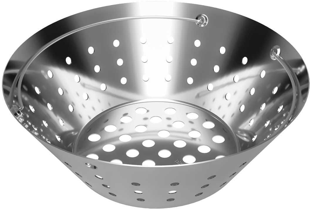Stalowa Misa Ogniowa Big Green Egg 2 XL (Fire Bowl 122698)) Wykonana ze stali nierdzewnej misa ogniowa jest niezbędna do bezpiecznego i czystego rozpalania grilla oraz usuwania resztek spalonego węgla z grilla. Zapewnia maksymalny przepływ powietrza dzięki czemu filtruje spalony popiół zgaszonego już węgla drzewnego. Posiada praktyczne uchwyty za pomocą których wkładamy i wyjmujemy ją z paleniska grilla Big Green Egg. Misa posiada dwie oddzielne komory, które wyznaczają dwie strefy grillowania w jajach 2 XL. Misa ogniowa wykonana jest ze stali nierdzewnej najwyższej jakości bez spoin, dzięki czemu jest wyjątkowo wytrzymała. Wykona za ciebie całą brudna robotę podczas czyszczenia grilla po użyciu. Misę umieszczamy bezpośrednio na dolnej kratce żeliwnej lub bezpośrednio w koszu ogniowym.