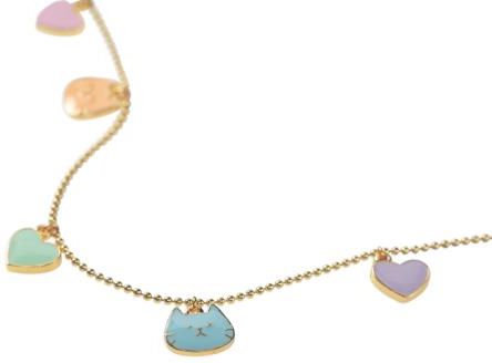 Naszyjnik z efektem Miauu! Czy są tu jakieś kocie mamy? Oto naszyjnik stworzony z myślą o Was! Pastelowe, emaliowane kotki i serduszka zawieszone są na złotym kulkowym łańcuszku, a mała, złota gwiazdka i miętowy frędzelek sprawiają, że ten naszyjnik jest jeszcze bardziej miau! Co jest bardziej …