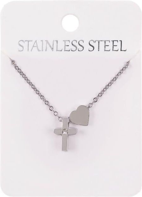 Naszyjnik z krzyżykiem i sercem wykonany ze stali nierdzewnej. Regulowana długość.