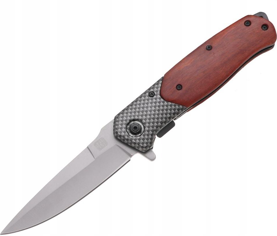 Nóż składany Głownia typu Spear point posiada utwardzony sztych, dzięki czemu idealnie nadaje się do pchnięć Cechy produktu: Nóż wykonany z wysokiej jakości stali Ozdobny uchwyt z kilku elementów (tworzywo oraz drewno) Klips umożliwia zapięcie na pasek Rękojeść typu Frame lock Bardzo ostry Wygodnie leży w dłoni W dolnej części rękojeści otwór na linkę Scyzoryk składany Bardzo solidne wykonanie Długość ostrza: 9 cm Długość noża: 22 cm Długość noża złożonego: 13 cm