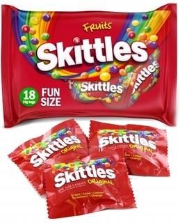 Cukierki Skittles Mini Paczki 18 szt prezent To kolorowe i owocowe smakołyki, które są uwielbiane przez wielu fanów słodyczy. Cukierki Skittles Mini Paczki to doskonała propozycjadla miłośników owocowych słodyczy. Ich różnorodność smaków i kolorów sprawia, że są one idealną przekąską na wiele różnych okazji. Smaki: Skittles to cukierkio różnych owocowych smakach, które pozwalają na zmysłową podróż przez różnorodność smaków. W jednym opakowaniu znajdziesz smaki takie jak truskawka, cytryna, pomarańcza, limonka i winogrono. Każdy z cukierków ma intensywny i naturalny smak owocu. 18 mini paczek! Opakowanie: Cukierki Skittles dostępnesą w formie małych, jednorazowych paczek o wadze 18 gramów każda. Te mini paczki są doskonałe na przekąskę w podróży, do wrzucenia do lunchboxa lub jako słodki dodatek na przyjęciach i imprezach. Te kolorowe smakołyki dodają radości i wesołości każdemu, kto je spożywa. Wielofunkcyjność: Cukierki Skittles są idealne na wiele okazji. Mogą być używane jako przekąska podczas filmowego wieczoru, dodatek do worka na lunch, czy też jako element dekoracji na urodzinach czy przyjęciach. Wysoka jakość: Skittles to znana marka słodyczy, która cieszy się popularnością na całym świecie. Cukierki te charakteryzują się starannym wykonaniem, co gwarantuje ich jakość i świeżość. Składniki cukier, syrop glukozowy, tłuszcz palmowy, kwas cytrynowy, kwas jabłkowy; Dekstryna, maltodekstryna, aromaty, skrobia modyfikowana, regulator kwasowości cytrynian trisodu, barwniki E120, E100, E171, E132, E160E, E133; Substancja powłokowa wosk carnauba, emulgator estry poliglicerolu i kwasów tłuszczowych.