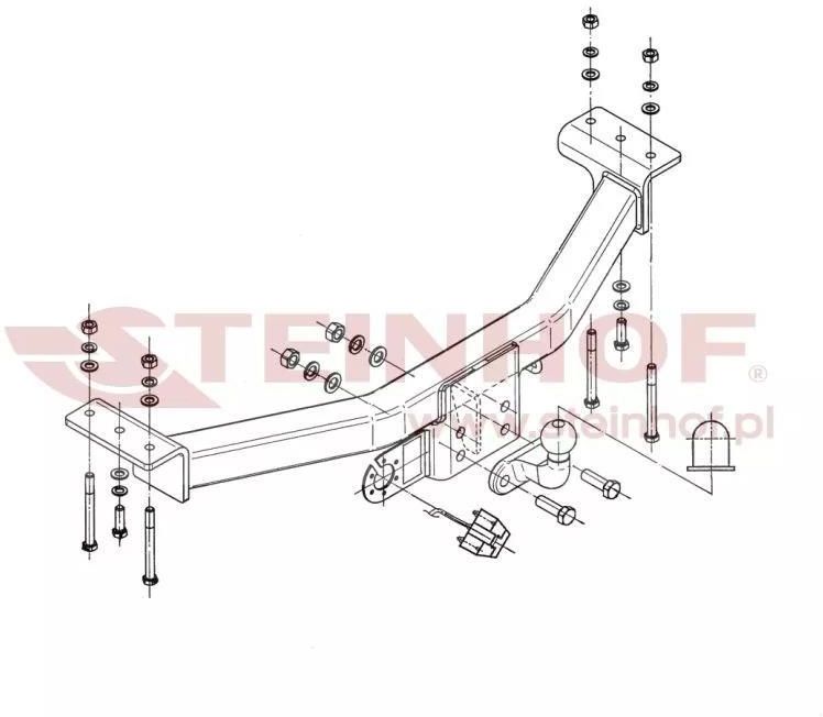 Hak Flanszowy STEINHOF M-350 Dane techniczne Homologacja: e4 Rodzaj kuli: Flanszowa Parametr "D" [kN]: 13,6 Max. uciąg [kg]: 2800 Max. nacisk pionowy [kg]: 100 Hak Flanszowy STEINHOF M-350 pasuje do poniższych aut:Kliknij tutaj aby rozwinąć listę(kliknij markę aby sprawdzić kompatybilne modele) MITSUBISHI MITSUBISHI Pajero Sport I [ 1999-2008 ] Wymaga zdjęcia / podcięcia zderzaka: NIE / NIE Hak flanszowy STEINHOF to rozwiązanie stworzone z myślą o samochodach dostawczych i pojazdach użytkowych, które wymagają maksymalnej wytrzymałości i niezawodności. Ten typ haka jest wybierany przez kierowców, którzy cenią sobie solidność, prostotę i trwałość konstrukcji. Dzięki brakowi mechanizmów ruchomych hak flanszowy jest całkowicie bezawaryjny i nie wymaga konserwacji. Jego montaż odbywa się w dedykowanych punktach mocowania, co zapewnia idealne dopasowanie do konkretnego modelu auta – bez potrzeby spawania, cięcia czy przeróbek w podwoziu pojazdu. Hak można wykorzystywać do holowania przyczep, montażu bagażników rowerowych lub innych akcesoriów transportowych. W razie potrzeby demontaż kuli jest bardzo prosty – wystarczy odkręcić dwie śruby. W praktyce jednak większość użytkowników pozostawia hak zamontowany na stałe, ze względu na jego trwałość i funkcjonalność. Każdy hak holowniczy STEINHOF produkowany jest z wysokogatunkowej stali i pokrywany trwałą powłoką proszkową, która skutecznie zabezpiecza przed korozją i czynnikami atmosferycznymi. To gwarancja wysokiej jakości, bezpieczeństwa oraz długiej żywotności produktu – przy zachowaniu konkurencyjnej ceny. Produkty marki STEINHOF objęte są 2-letnią gwarancją producenta, co potwierdza ich niezawodność i precyzję wykonania. Co zawiera zestaw Belkę haka idealnie dopasowaną do Twojego auta Kulę flanszową Zestaw montażowy (wsporniki, śruby, podkładki, etc.) Osłonkę kuli (kapturek) Homologację - tabliczka znamionowa na belce - wymagana do rejestracji! Podstawka pod gniazdo elektryczne Instrukcja montażu Hak standardowo nie zawiera w zestawie wiązki elektrycznej. Odpowiednio dopasowane zestawy elektryczne znajdziesz poniżej. Producent lub osoba odpowiedzialna GRUPA STEINHOF SPÓŁKA Z OGRANICZONĄ ODPOWIEDZIALNOŚCIĄ Przemysłowa 27A 33-100 Tarnów sekretariat@steinhof.plOstrzeżenia dotyczące bezpieczeństwa: Montaż wyłącznie przez wykwalifikowany warsztat. Nie przekraczać maksymalnego uciągu i nacisku na kulę określonych przez producenta. Przed każdą jazdą sprawdzić mocowanie i stan haka. Nie używać haka z oznakami uszkodzenia lub luzami. Nie modyfikować elementów haka ani mocowań. Regularnie kontrolować momenty dokręcenia i stan połączeń. Używać wyłącznie do holowania pojazdów zgodnych z homologacją.