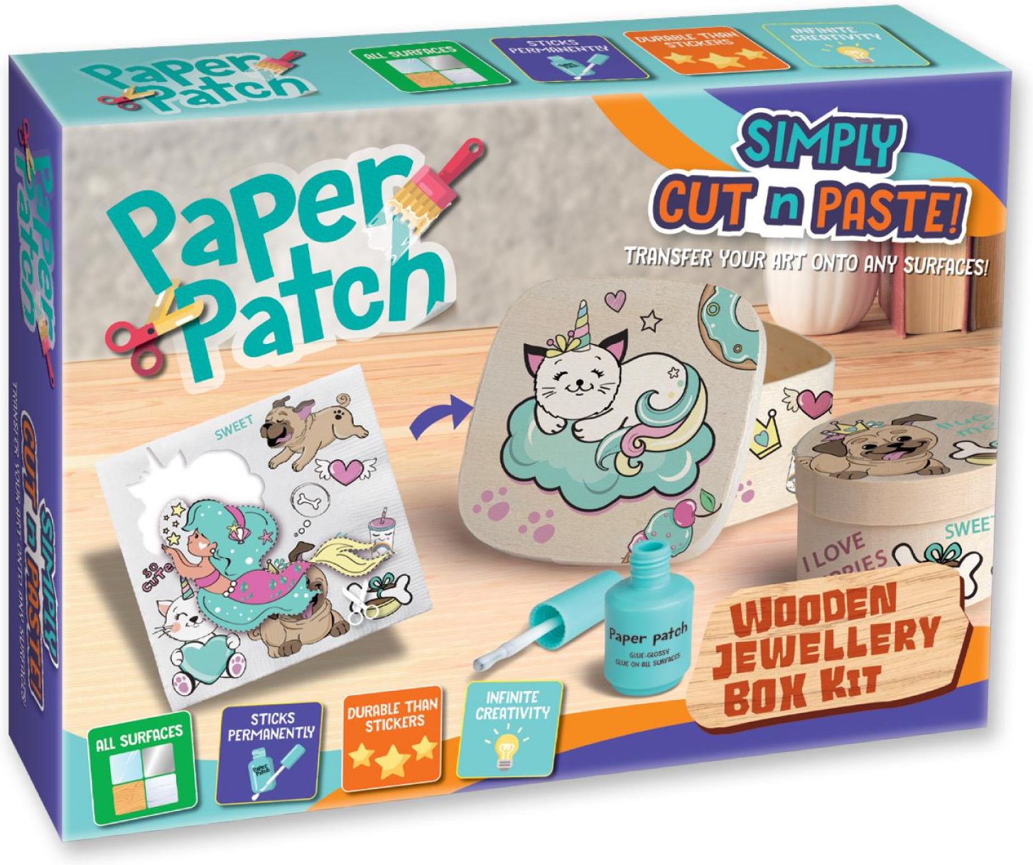 Zestaw kreatywny Strigo do Decoupage Paper Patch drewniana szkatułka z kotkiem Strigo ✅ ✔️ Kreatywny zestaw Strigo do decoupage. Idealny produkt do rozwijania zdolności manualnych i pobudzenia kreatywności. Rozwija również stymulacje sensoryczne, dzięki kolorom i różnym teksturom. Wybrany motyw …