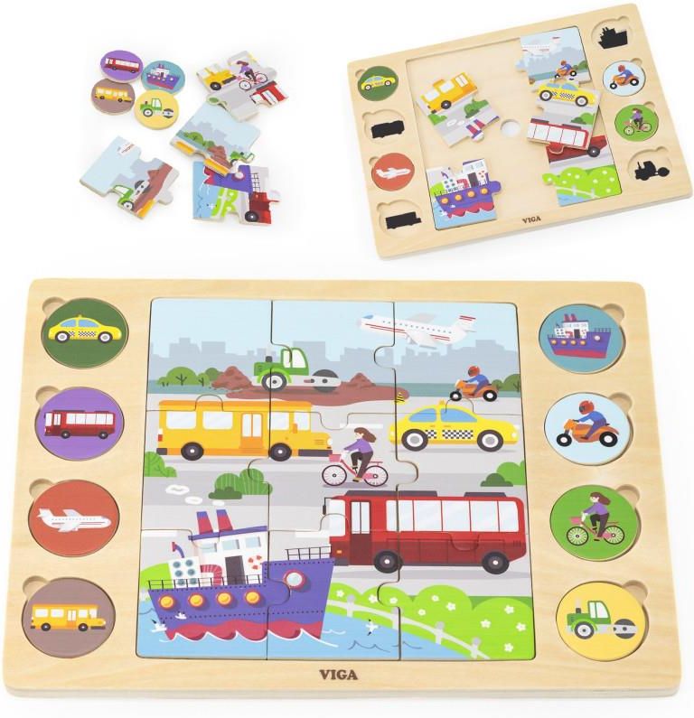 Viga Toys Drewniane Puzzle Odgadnij Po Cieniu - Środki Transportu Układanka 17 El. Olkusz
