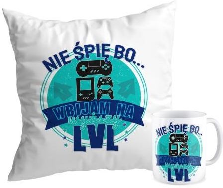 Prawdziwy GAMER nadchodzi... Zwycięstwo masz w kieszeni, ale poza umiejętnościami, komfort gry to podstawa. Mamy dla Ciebie najnowszą kolekcję stworzoną z myślą o takich pasjonatach jak Ty! Wysokiej jakości pełnokolorowy nadruk i oryginalne projekty to Nasz atut. Do dzieła...od teraz każdy pojedynek będzie zwycięstwem;) Zestaw składający się z kubka i poduszki to świetny pomysł na prezent. Poranna kawka w takim kubku będzie nieziemsko smakować, a poduszka pozwoli na chwilę relaksu między jednym level'em, a drugim. Zabawny tekst i niebanalny projekt z pewnością sprawi wiele radości ;) PODUSZKA Tylko u nas w tak atrakcyjnej cenie otrzymujesz poduszkę ze zdejmowaną poszewką. Dzięki takiemu rozwiązaniu poszewkę możesz w każdej chwili wyprać, nie narażając wkładu na utratę swych właściwości elastycznych. Każda poduszka pakowana w woreczek foliowy. Opis produktu: ROZMIAR: 40cm x 40cm (+/- 2cm) POSZEWKA: materiał: mikrofibra gramatura: 90 wyposażona w zamek błyskawiczny WKŁAD: 100% włókno silikonowe 1 gatunek antyalergiczny NADRUK: pełnokolorowy, niewyczuwalny w dotyku, żywe kolory KUBEK Opis produktu: Powłoka: wielowarstwowa utwardzana De Lux Pojemność: 330ml Wysokość: 93mm Nadruk: pełnokolorowy, niewyczuwalny w dotyku Rozmiar nadruku: max. 190mm - 93mm Nadruk odporny na mycie w zmywarce