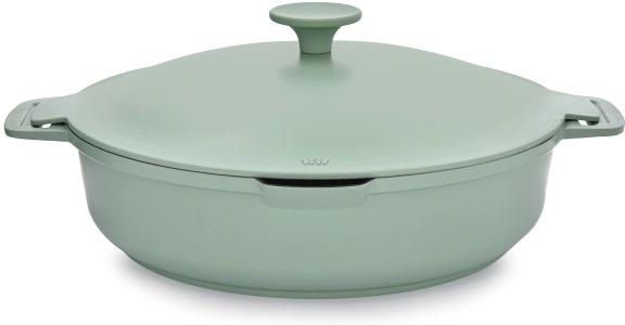Patelnia głęboka z powłoką Qualum Basic z pokrywką Fern 28 cm AMBITION Patelnia głęboka z powłoką Qualum Basic Patelnia głęboka z kolekcji Fern marki Ambition to doskonałe połączenie nowoczesnego designu, innowacyjnych technologii i funkcjonalności, która sprawdzi się w każdej kuchni. Wykonana z odlewanego aluminium, zapewnia wyjątkową trwałość i odporność na odkształcenia, równomiernie się nagrzewa i długo utrzymuje ciepło, co czyni gotowanie bardziej energooszczędnym. Wewnętrzna powłoka Qualum Basic Stone Edition gwarantuje doskonałe właściwości nieprzywierające i odporność na ścieranie. Patelnia wyposażona jest w pokrywę z aluminiowym rantem i praktycznymi otworami umożliwiającymi odparowywanie i odcedzanie. Odlewane uchwyty pozwalają na użytkowanie w piekarniku do 250°C (bez pokrywki), a dołączone silikonowe nakładki chronią dłonie przed oparzeniem. Dodatkowo zastosowano system do wygodnego odkładania pokrywki w uchwycie oraz dwustronną wylewkę, ułatwiającą wylewanie płynów. Uniwersalne dno indukcyjne pozwala na stosowanie patelni na wszystkich typach kuchenek, w tym indukcyjnych. •Design: modna szałwiowa kolorystyka inspirowana naturalnymi barwami ziemi•Jakość wykonania: trwałe odlewane aluminium odporne na odkształcenia•Innowacje technologiczne: system odkładania pokrywki w uchwycie i dwustronna wylewka•Praktyczność: pokrywa z otworami do odcedzania i odparowywania•Wszechstronność: możliwość używania w piekarniku i na wszystkich typach kuchenek•Informacje o marce: Ambition to marka znana z funkcjonalnych i estetycznych naczyń kuchennych Dane techniczneMarkaAmbitionKolekcjaFernŚrednica [cm]28Długość [cm]31Szerokość [cm]31Wysokość [cm]10.5Waga [kg]1.776MateriałAluminium, Powłoka nieprzywierająca, Qualum, Silikon, Tworzywo sztuczneZastosowanieIndukcja, Kuchenka elektryczna, Kuchenka gazowa, Piekarnik, Płyta ceramicznaKolorczarny, zielonyWzórgładkiEan5907078481586Ten produkt może być używany bezpiecznie i w sposób określony przez producenta wyłącznie w oparciu o instrukcje używania i konserwacji, zalecenia, ostrzeżenia lub informacje na temat bezpieczeństwa umieszczone na produkcie bądź jego opakowaniu lub dołączone do produktu. 5907078481586 Ze względu na ręczne pomiary możliwe jest niewielkie odchylenie pomiarowe. Ze względu na różne efekty oświetlenia i ustawienia ekranu kolor produktu może się nieznacznie różnić od rzeczywistego koloru.
