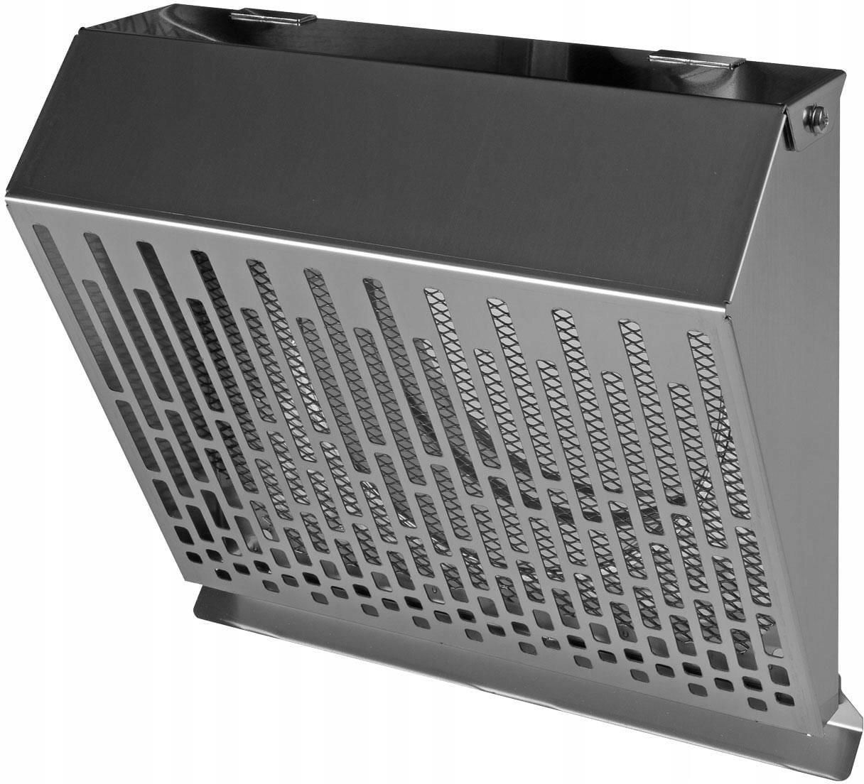 Wyrzutnia / Czerpnia ścienna powietrza z okapnikiem VWSM fi 250 Inox Zakończenia kanałów w systemach wentylacji mechanicznych z rekuperacją. Do zastosowania zewnętrznego, w budynkach mieszkalnych i użyteczności publicznej. Standardowo wyposażona w okapnik chroniący ścianę przez powstawaniem zacieków oraz siatkę zabezpieczającą otwór wylotowy. Zastosowana geometria prostopadłego do ściany wyrzutu powietrza z zamknięciem bocznym zapobiega zabrudzeniu ściany od zużytego powietrza. Specjalnie zaprojektowana geometria zapewnia minimalny opór / spadek ciśnienia wyrzucanego / czerpanego powietrza. Gumowa uszczelka ułatwia montaż oraz zabezpiecza wypływanie wody z kanału wentylacyjnego. Otwory montażowe w narożnikach pozwalają na przykręcenie do ściany. Boczne umiejscowienie wkrętów mocujących odłączalnego frontu wyrzutni ułatwia montaż oraz demontaż do konserwacji. Budowa: Wysokiej jakości blacha stalowa nierdzewna – kwasoodporna chromowo-niklowa (gatunek: 316L/1.4404) o grubości 0,5-0,6 mm Estetyczna powierzchnia polerowana szczotkowana Siatka ochronna otworu wylotowego Kołnierz montażowy z uszczelką dwuwargową Szybki i łatwy montaż (4 otwory montażowe w narożnikach). Wymiary: Charakterystyka przepływu: