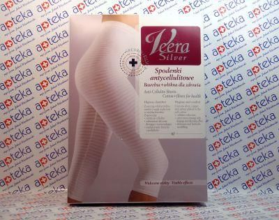 Korsarz Veera Silver to spodenki antycellulitowe z wysokim stanem zaprojektowane po to, że wesprzeć redukcję cellulitu. W produkcji zastosowano wiele innowacyjnych rozwiązań, które czynią je bardzo skutecznym wyrobem medycznym. Świadczą o tym m.in. pozytywne opinie dotychczasowych klientów zadowolonych z ich użytkowania. W miękką bawełnę, z której stworzone są spodenki, wkomponowano włókna węgla, srebra i miedzi, co pobudza mikrokrążenie i wykonuje drenaż limfatyczny, a to bezpośrednio wpływa na kondycję i jędrność ciała oraz skóry. Cząsteczki węgla posiadają dodatkowo właściwości oczyszczające, pomagają odprowadzać z organizmu nadmiar płynów i przyspieszając proces eliminowania szkodliwych toksyn. Spodenki antycellulitowe Veera Silver wykonano z wytrzymałego materiału wysokiej jakości, co gwarantuje długotrwałe i satysfakcjonujące użytkowanie. Elastyczna dzianina modeluje i wyszczupla pośladki oraz brzuch, a do tego jest przyjemna w dotyku. Dzięki zastosowaniu specjalnej srebrnej nici produkt zapewnia wysoki poziom higieniczny, gwarantując przeciwgrzybicze i antybakteryjne właściwości. Aby cieszyć się maksymalizacją efektów, ze spodenek antycellulitowych należy korzystać z nich przynajmniej 8 godzin dziennie przez 3 miesiące. W większości przypadków pozytywne rezultaty widać jednak o wiele wcześniej. Ich codzienne użytkowanie warto połączyć z aktywnym i zdrowym trybem życia, ponieważ złe nawyki niwelują medyczne działanie wyrobu. Spodenki antycellulitowe Veera Silver można nosić w każdych warunkach – na podstawie pozytywnych opinii klientów można stwierdzić, że świetnie sprawdzają się np. jako profesjonalny strój do treningów. Przeciwwskazaniem do ich stosowania jest natomiast okres ciąży i karmienia. Cechy: redukcja cellulitu mikromasaż aktywnie drenujący i wyszczuplający modelowanie brzucha i pośladków Skład: 42,0% Bawełna, 42,0% Poliamid, 11,1% Elastan, 1,0% Srebro, 1,0% Węgiel, 2,9% Miedź Wskazówki: aby uzyskać efekty należy nosić spodenki Veera Silver przynajmniej 3 miesiące. Większość Klientek zauważa poprawę już o wiele wcześniej. aby osiągnąć oczekiwane efekty należy nosić spodenki przynajmniej 8 godzin w ciągu doby podczas kuracji organizm oczyszcza się z toksyn, dlatego spożywanie fast-foodów, niezdrowej żywności, palenie spowalniają znacznie pojawianie się efektu lub też uniemożliwiają oczyszczenie organizmu spodenki można nosić zarówno w nocy, jak i w ciągu dnia spodenki nadają się idealnie do używania podczas aktywności fizycznej Rozmiar dobieramy korzystając z tabeli rozmiarów (powyżej). Zgodnie z ustawą o prawach konsumenta dot. art. 38 po otwarciu opakowania i przymiarce produktu, ze względu na ochronę zdrowia oraz higienę – produkt NIE PODLEGA ZWROTOWI.