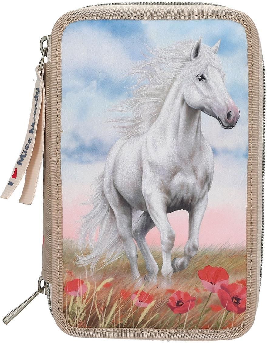 Depesche 13341 Miss Melody Poppy Sand Wypełniony 3-Komorowy Piórnik W Kolorze Beżowym Z Motywem Konia I Maków Olsztyn