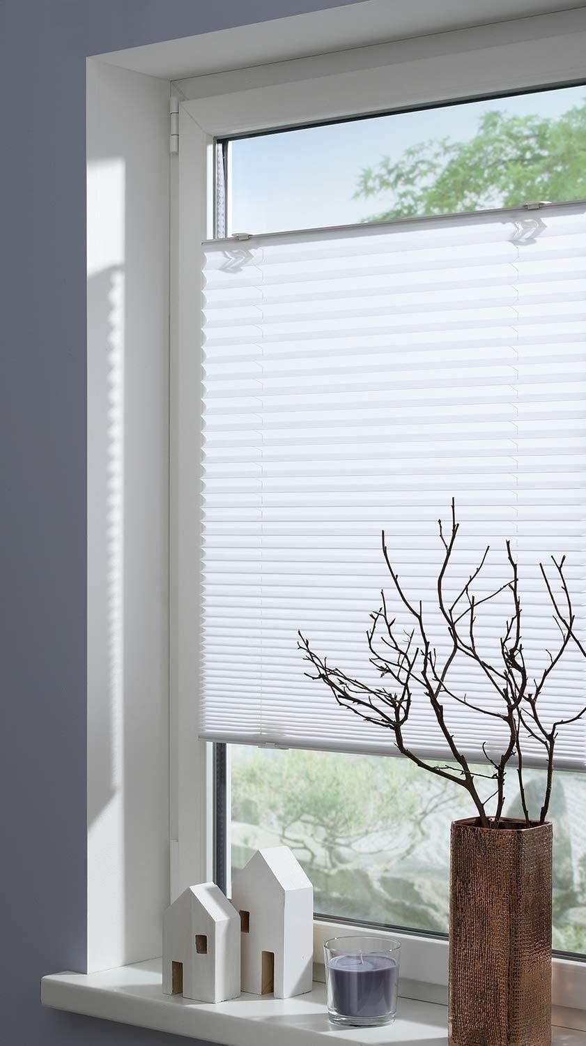 Stylowa roleta plisowana do wszystkich popularnych okien, mocowanie w dowolnym pożądanym miejscu na oknie, półprzezroczysta, ale nieprzezroczysta ochrona przed słońcem i ochrona przed słońcem, montaż bez wiercenia i przykręcania przyssawkami Indywidualnie regulowana wysokość: Łatwa ręczna regulacja napinanej żaluzji dzięki przyssawkom Beznarzędziowy montaż z 4 przyssawkami w każdej pozycji okna: Praktyczny mechanizm zatrzaskowy do zakładania i zdejmowania przyssawek, bez wychylania nawet przy odchylonym oknie, wyjmowanie bez pozostałości Dekoracyjne dekoracje okien: regulowana wysokość i nowoczesna technologia składania z plisami o szerokości 20 mm, łatwe czyszczenie za pomocą miękkiej szczotki, w 100% bezpieczne dla dzieci zgodnie z EN 13120, idealne do wynajmu mieszkań Zakres dostawy: 1 x żaluzja plisowana GARDINIA z 4 przyssawkami, 2 poręczami wykonanymi z aluminium, biała, 50 x 130 cm (szer. X wys.)
