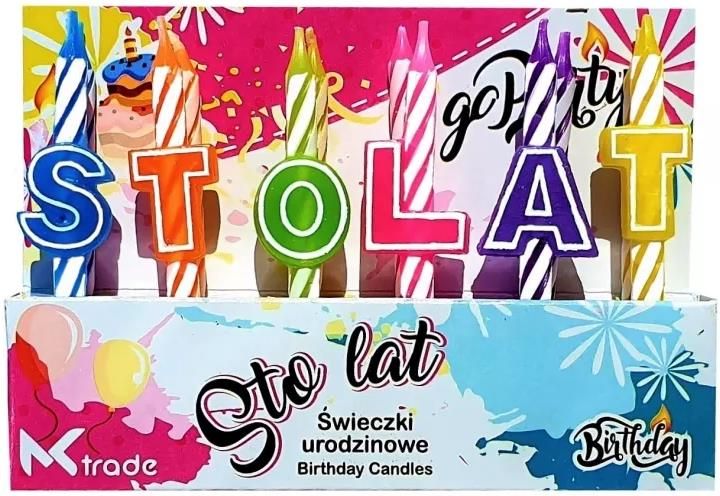 Mk Trade Świeczki Urodzinowe Kolorowe Sto Lat 12Szt Olsztyn