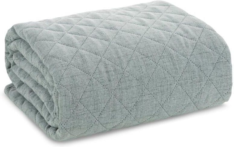 Narzuta dekoracyjna LEN 170x210 miętowa pikowana w geometryczny wzór Eurofirany Stylowa narzuta dekoracyjna LEN, wykonana techniką hot press z przyjemnego w dotyku materiału imitującego len, od producenta Eurofirany. Szeroka kolorystyka i ciekawy deseń sprawiają, że narzuta wkomponowuje się we wnętrza urządzone w różnych stylach, zarówno tych klasycznych jak i nowoczesnych. Narzuta na łóżko to szybki sposób na zmianę wystroju wnętrza. Niezwykły design, świeże kolory, doskonała jakość - to cechy, którym nie sposób się oprzeć. Wysoka jakość wykonania, dbałość o detale, stosowne atesty dają gwarancję, że narzuta posłuży przez długi czas. Narzuta zapakowana jest w estetyczne opakowanie, dzięki czemu może ona stanowić pomysł na niebanalny prezent. Przepis konserwacji prać w temperaturze do 30°C; nie czyścić chemicznie; nie prasować; nie chlorować; suszyć w stanie rozwieszonym; Producent: Eurofirany Rozmiar: 170x210 cm Kolor: miętowy Gramatura: 140+120+70 GSM Skład: 100% poliester Skład: 100% poliester Kolor: miętowy Rozmiar: 170x210