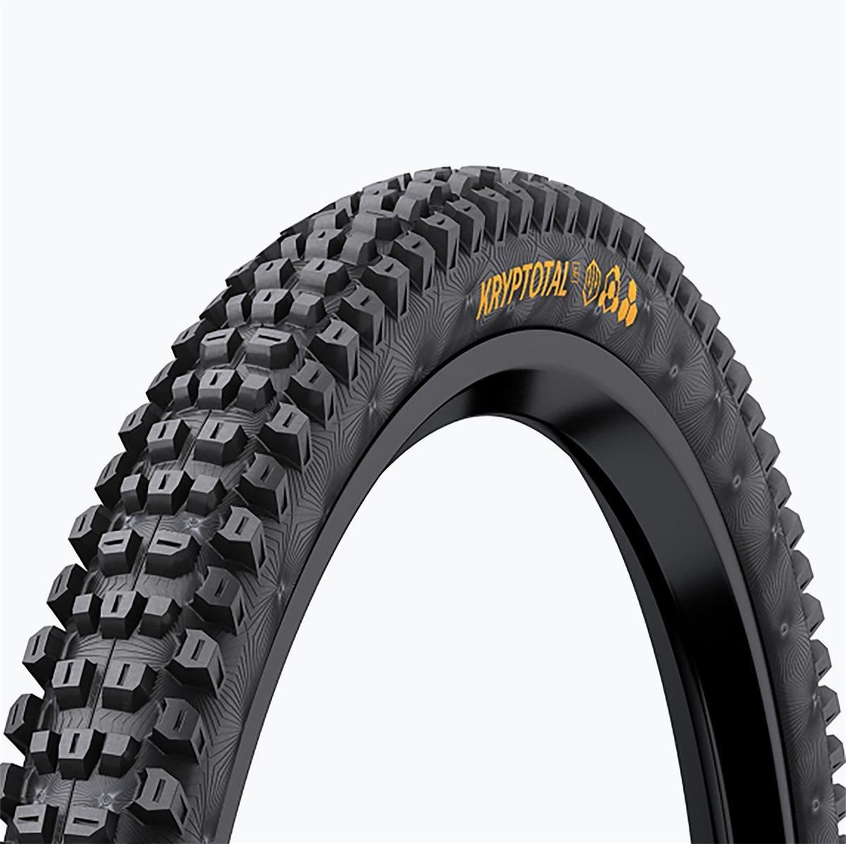 Kryptotal Front Enduro 27,5 czarny 27,5 x 2,40 Kolor: czarnySzerokość: 27,5 x 2,40 Dodatkowe cechy: BlackChili Przód / tył: przód Typ opony: bezdętkowa Opis produktu i specyfikacja Kryptotal-F jest oponą zaprojektowaną z myślą o pokonywaniu najbardziej wymagających tras enduro i zjazdowych. Bieżnik zaprojektowany specjalnie z myślą o jak najlepszym działaniu na przednim kole. Wysoki i gęsto rozmieszczony o kwadratowym profilu, wgryza się w ziemię, błoto i zapewnia stabilność na skałach czy luźnych kamieniach. Kryptotal łączy ze sobą doskonałą przyczepność w każdych warunkach z optymalnymi oporami toczenia, cechy te sprawiają, że opona ta może okazać się świetnym wyborem nawet na zawody najwyższej klasy. Dzięki przystosowaniu opony do instalacji systemu tubeless (bezdętkowego) zyskano wiele korzyści takich jak możliwość obniżenia ciśnienia w naprawdę trudnych warunkach, lepsze układanie się opony do terenu, mniejsza awaryjność niż w przypadku klasycznych dętek, obniżenie wagi zestawu. Producent: Continental Model: Kryptotal-F Ścianka boczna: Enduro Twardość mieszanki: Soft Rozmiar koła: 27.5" Szerokość: 2.40" Typ: Zwijana Kompatybilna z systemem bezdętkowym (Tubeless Ready) Przeznaczenie: Trail, Enduro, Downhill, Freeride, E-bike TPI: 3/330 Waga: ~ 1025 g Cechy Przeznaczona do montażu na przednim kole Agresywny, szybko czyszczący się bieżnik Doskonała przyczepność w każdych warunkach Zoptymalizowane opory toczenia Certyfikat E25 Powierzchnia TPI - 3/330 Mieszanka - Soft Wersja - Enduro Soft: Równowaga przyczepności i oporów toczenia w przypadku zastosowań grawitacyjnych. Wysoki poziom przyczepności przy optymalnych oporach toczenia. Enduro: Wytrzymała, sztywna, jednowarstwowa konstrukcja osnowy z Apex, która chroni obręcz przed uszkodzeniami Wszystkie opony Continental z oznaczone symbolem E25 lub ECO25 są przystosowane do rowerów elektrycznych do prędkości co najmniej 25 km/h. Konstrukcja opony jest solidna i odporna na uszkodzenia, dodatkowo zastosowanie technologii Tubeless Ready daje możliwość zrezygnowania z dętki, lecz można je używać także z dętką. Zalecane jest stosowanie płynu uszczelniającego Continental Revo-Sealant.