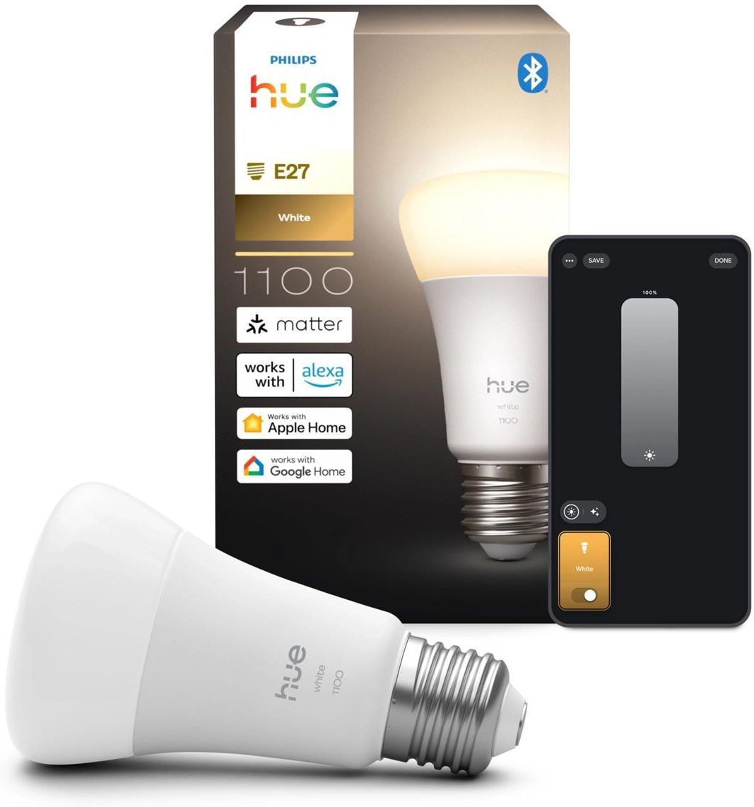 Żarówka LED E27 A60 9.5W = 75W 1100lm 2700K Biała Ciepła SMART Inteligentna Bluetooth ZigBee White Philips HUE Korzyści z zastosowania naszego produktu Łatwy start: Zamontuj żarówkę, pobierz aplikację Hue i od razu ciesz się inteligentnym sterowaniem światłem z telefonu. Białe światło dopasowane do …