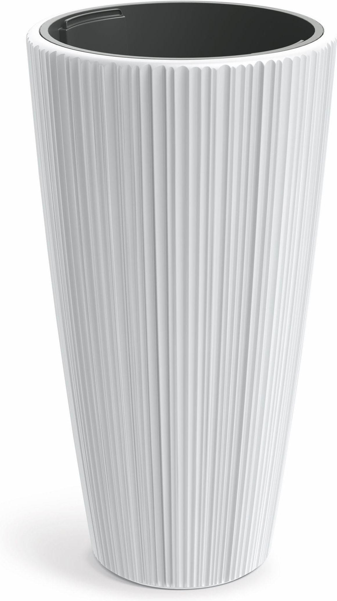 Doniczka Oro Round – elegancja w pionowych liniach Jeśli marzysz o doniczce, która będzie prawdziwą ozdobą salonu, tarasu czy holu – Oro Round jest dokładnie tym, czego szukasz! Jej smukła forma i stylowe, pionowe żłobienia przyciągają wzrok i dodają przestrzeni lekkości oraz nowoczesnego charakteru. Wysoki kształt sprawia, że doniczka doskonale wyeksponuje zarówno duże rośliny ozdobne, jak i kompozycje z traw czy palm. Wyposażona w praktyczny wkład wewnętrzny, ułatwia przesadzanie i pielęgnację roślin, a jednocześnie ogranicza ilość ziemi potrzebnej do wypełnienia donicy. Wykonana z trwałego tworzywa, odporna na warunki atmosferyczne, świetnie sprawdzi się również na zewnątrz – bez obaw o mróz czy promienie UV. Biała wersja kolorystyczna dodaje elegancji i świeżości, pasując do niemal każdego stylu aranżacji. Doniczka Oro Round to połączenie funkcjonalności i ponadczasowej estetyki – idealna, by rośliny grały pierwsze skrzypce w Twoim otoczeniu! Średnica : 39 cm Wysokość : 73 cm Pojemność donicy/wkładu : 60/20l
