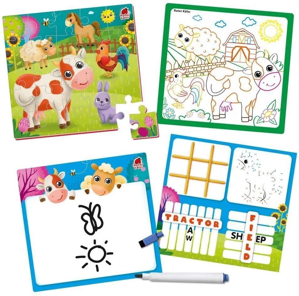 Wielu rodziców zauważa, że tradycyjne zabawki szybko nudzą dzieci, nie rozwijając ich kreatywności ani umiejętności poznawczych. To sprawia, że maluchy spędzają czas przed ekranem lub domagają się stale nowych rozrywek, a opiekunowie szukają czegoś, co naprawdę zaangażuje ich pociechy. W efekcie codzienne chwile zabawy tracą swój edukacyjny potencjał, a rodzice czują frustrację z powodu braku wartościowych aktywności. Gra edukacyjna Roter Käfer 4 w 1. Farma to innowacyjne rozwiązanie, które zamieni zwykłą zabawę w naukę poprzez cztery różnorodne opcje w jednej grze. Dzięki temu zestawowi, Twoje dziecko będzie nie tylko świetnie się bawić, ale także rozwijać ważne umiejętności w przyjazny i angażujący sposób. Różnorodność zabawy: Zestaw łączy puzzle, grę planszową, grę słowną oraz tablicę do rysowania, gwarantując kreatywność i skupienie na wiele godzin. Nauka przez zabawę: Znajomość zwierząt gospodarskich, ćwiczenie koordynacji ręka-oko czy nauka słów po polsku i angielsku wpływają na wszechstronny rozwój dziecka. Wysoka jakość i bezpieczeństwo: Produkt posiada dwuletnią gwarancję producenta, co gwarantuje jego solidność i bezpieczeństwo dla najmłodszych. Zadowoleni rodzice podkreślają, że ich dzieci bawią się grą codziennie, nie tracąc zainteresowania dzięki różnorodności zabaw i możliwości rysowania lub układania nowych słów. Jeśli szukasz zabawki, która naprawdę inspiruje i uczy, gra edukacyjna Roter Käfer 4 w 1. Farma to najlepszy wybór dla Twojego dziecka. Zapewnij maluchowi rozwój przez zabawę i radość odkrywania — już dziś zamów ten wszechstronny zestaw, aby wzbogacić codzienną naukę oraz wspólne chwile w domu! Kluczowe cechy i korzyści: 4 różne formy aktywności w jednym zestawie Edukacja poprzez zabawę oraz rozwijanie praktycznych umiejętności Rozwój kreatywności, logicznego myślenia oraz koordynacji 2 lata gwarancji producenta, bezpieczeństwo i jakość