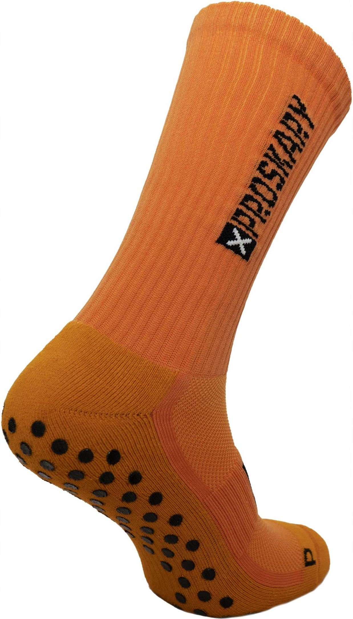 PROSKARY DLA PRO-GRACZY! Rozmiar junior pasujący na rozmiar stopy 35-39 i jest dedykowany dla zawodników grup młodzieżowych oraz kobiet. Skarpety antypoślizgowe piłkarskie pomarańczowe ! Proskary zostały zaprojektowane po to, aby zapewnić Ci niesamowity komfort oraz stabilność podczas użytkowania. Zapobiegają przesuwaniu się stopy w bucie i maksymalizują kontrolę ruchów. Elastyczny materiał sprawia, że Proskary idealnie przylegają do Twojej stopy, wykazując jednocześnie odpowiedni poziom wentylacji. Proskary zostały stworzone, aby zwiększyć Twoją przyczepność i zwrotność, dając Ci przewagę nad przeciwnikiem. Staniesz się bardziej dynamiczny i poprawisz swoje przyspieszenie. Kapitalny design, odpowiednie wymiary i wyraziste kolory to znaki szczególe naszych skarpet. Proskary występują w kolorach : biały, czarny, zielony, niebieski, żółty, czerwony, limonkowym, różowy, fioletowym. Gumki antypoślizgowe rozmieszczone są tylko tam, gdzie Twoja stopa potrzebuje ich najbardziej, przez co skarpety są niezwykle lekkie i komfortowe. Idealne na trening oraz do codziennego użytkowania. Proskary występują w dwóch rozmiarach: - Junior : pasujący na rozmiar stopy 35-39 i jest dedykowany dla zawodników grup młodzieżowych oraz kobiet. - Senior : pasujący na rozmiar stopy 40-47. Prosimy o wybranie odpowiedniego rozmiaru podczas zamawiania lub wskazanie go w komentarzu dla sprzedającego. Skład materiału: Prolen siltex 50%, Bawełna 35%, Elastyna 10% , Lycra 5 %.