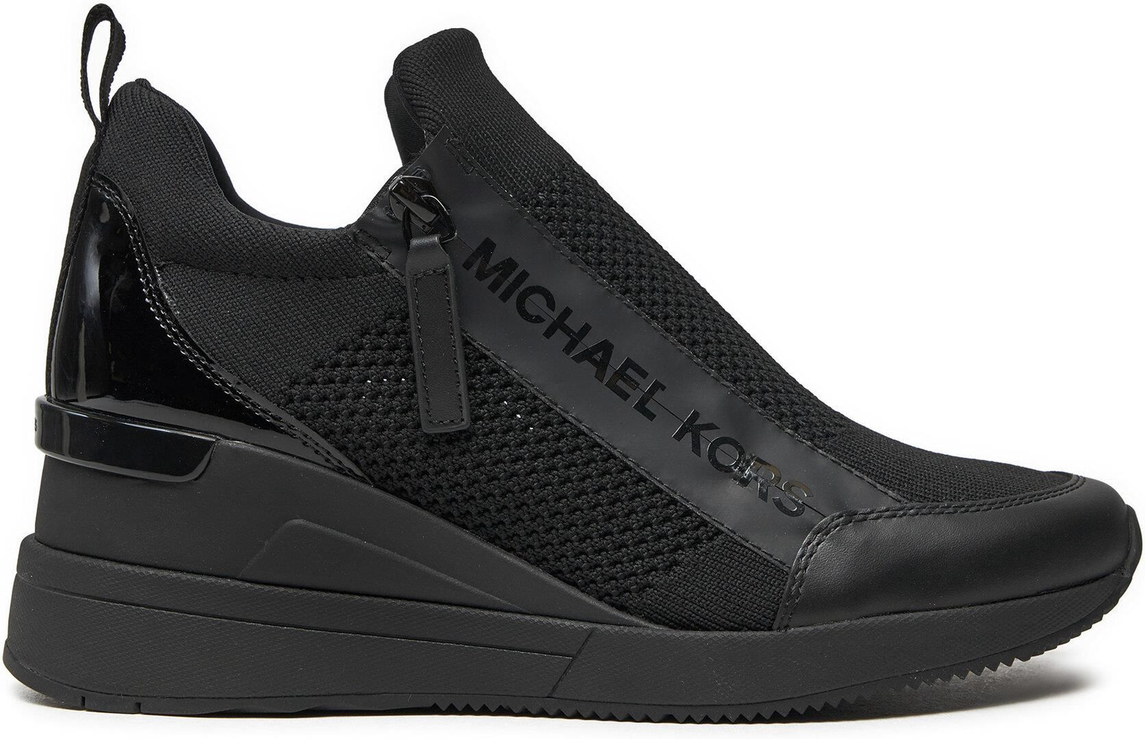 Sneakersy MICHAEL Michael Kors to idealne połączenie stylu i wygody. Wykonane z imitacji skóry i elastycznego materiału, zapewniają komfort oraz modny wygląd. Osadzone na koturnie, dodają kilku centymetrów wzrostu, a zapięcie na suwak ułatwia szybkie zakładanie i zdejmowanie. Okrągły nosek i pętelka z tyłu dodają funkcjonalności. Wkładka z miękkiego materiału gwarantuje komfort noszenia przez cały dzień. Te sneakersy to świetny wybór dla kobiet, które cenią modę i wygodę w jednym.