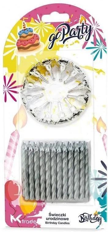 Świeczki Urodzinowe 12Szt. Srebrne Spiralne Olsztyn