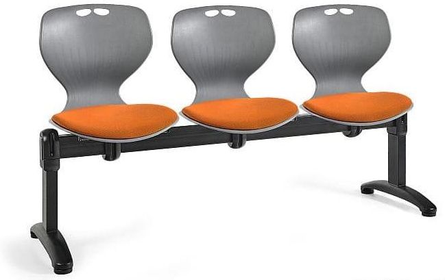 Dane Techniczne: Podstawa ławki stal - malowana proszkowo - kolor czarny Siedzisko tworzywo sztuczne - polipropylen PP nakładka tapicerowana tkaniną BL405 Kolor kubełka szary Kolor tapicerowanej nakładki siedziska tkanina BL405 mandarin Ilość siedzisk 3 Uchwyt tak w oparciu Regulacja wysokości tak …