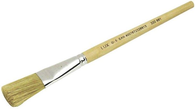 Pędzel do emalii Basic, w rozmiarze 5, marki LUX-TOOLS. Jest to pędzel z wysokiej jakości naturalnym, jasnym świńskim włosiem o wysokości 42 mm, które zapewnia osiągnięcie najlepszych wyników malowania. Komfort użytkowania zwiększa poręczny drewniany trzonek. Pędzel idealnie nadaje się do nanoszenia niewielkich korekt podczas prac malarskich. Specyfikacja techniczna Rodzaj: Inne Waga: 17 g Wysokość: 22,0 cm Szerokość: 2,2 cm Głębokość / Grubość: 1,3 cm