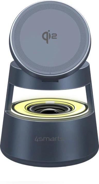 Stacja ładująca bezprzewodowa 4smarts Aura Sound Qi2 Szara - Gray Stacja ładująca 4smarts Aura Sound to wielofunkcyjna szybka ładowarka indukcyjna 3w1, wykorzystująca technologię magnetyczną Qi2 do zasilania smartfonów, słuchawek i smartwatchy. Z łączną mocą 30 W, dodatkowym portem USB-C i wbudowanym głośnikiem, stanowi idealne, kompaktowe zasilanie dla każdego urządzenia.