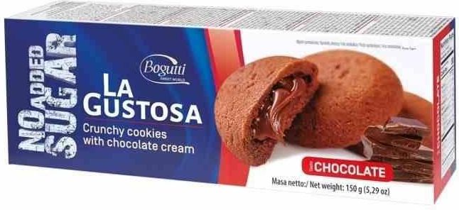 BOGUTTI Kruche ciasteczka z kremem czekoladowym bez cukru 150g BOGUTTI Kruche ciasteczka z kremem czekoladowym bez cukru 150g najważniejsze właściwości intensywnie czekoladowy smak pyszne kremowe nadzienie wyprodukowane na bazie wysokiej jakości składników słodzone maltitolem bez dodatku cukru …