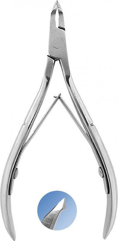 Cążki do skórek 9,5 cm Klasyczne cążki do skórek z podwójną sprężyną. Cienkie, lekko zakrzywione ostrze umożliwia precyzyjną i bezbolesną pielęgnację. Cążki wykonane są z wysokiej jakości utwardzonej stali, co gwarantuje niezmienne właściwości przez bardzo długi okres użytkowania. Wymiary: długość nożyczek 9,5 cm, długość ostrza 0,4 cm.