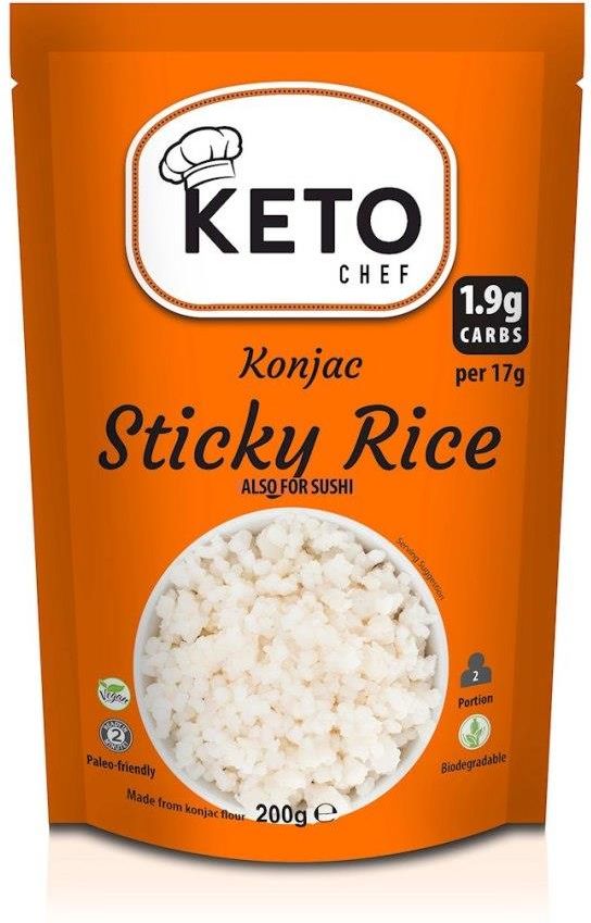 RYŻ KLEISTY (KONJAC) DO SUSHI BEZGLUTENOWY 200 g - KETO CHEF (BETTER THAN FOODS) SKŁADNIKI woda oczyszczona, skrobia z tapioki, ryż biały okrągły (5 %), mąka konjac (3 %), substancja zagęszczająca: mączka chleba świętojańskiego OPIS Konjac Sticky Rice wytwarzany jest z korzenia rośliny konjac i …