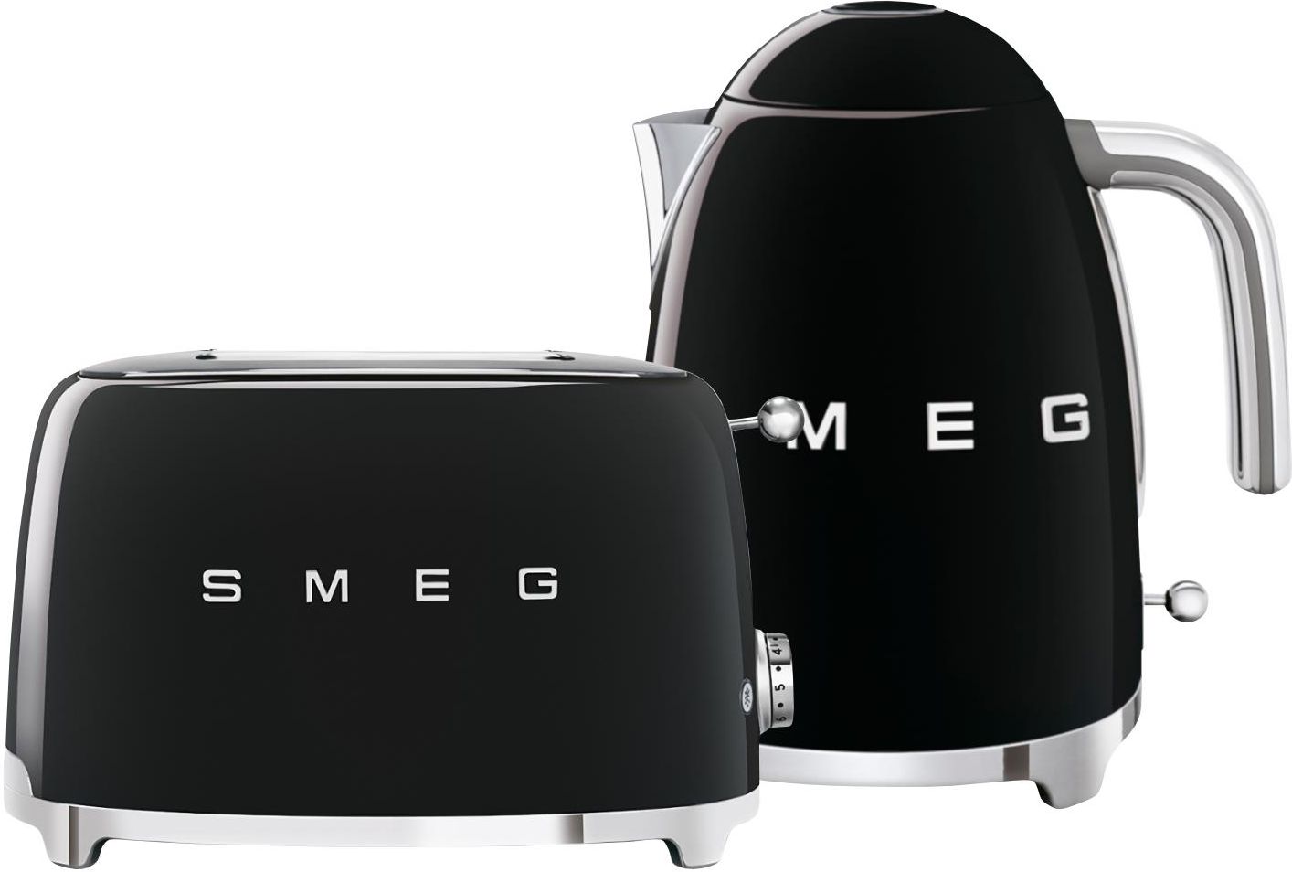 Zestaw śniadaniowy 50's Retro Style Oferowany zestaw śniadaniowy produktów z linii 50’s Retro Style marki Smeg to doskonały duet ułatwiający przygotowanie porannego posiłku. Wykonane z wysokiej jakości materiałów - m.in. tworzywa i stali nierdzewnej - urządzenia dzięki opływowym kształtom, chromowanym podstawom oraz eleganckiemu czarnemu kolorowi wspaniale zaprezentują się na blacie kuchennym, uzupełniając nowoczesne wystroje - można je będzie przechowywać na widoku, gdy akurat nie będą używane. Toster na dwie kromki posiada komory o szerokości 36 mm. Pieczywo automatycznie umieszczane jest na ich dnie oraz automatycznie wysuwane po zakończeniu cyklu opiekania, co przyspiesza przygotowywanie tostów. Sześciostopniowa regulacja daje możliwość kontroli poziomu opiekania. Natomiast trzy programy pracy pozwalają na podgrzewanie kromek, rozmrażanie pieczywa oraz przygotowywanie bajgli, co zwiększa zastosowania tostera. Zainstalowana wewnątrz, łatwa w opróżnianiu tacka zbiera okruchy, zapobiegając powstawaniu niepotrzebnego bałaganu wokół urządzenia. Funkcje tostera: 6 stopni opiekania 3 programy: podgrzewanie, rozmrażanie, bajgiel Czajnik o pojemności 1,7 L z pokrywką otwieraną przy użyciu systemu Soft Opening posiada w swoim wnętrzu bezpieczny i praktyczny system grzewczy z ukrytymi elementami grzewczymi. Wygodna podziałka z przeliczeniem na litry oraz filiżanki pozwala łatwo kontrolować poziom wody. Urządzenie wyposażone zostało w wyjmowany filtr wapienny ze stali nierdzewnej, który ogranicza osadzanie się kamienia w jego wnętrzu. Dodatkowe bezpieczeństwo użytkowania zapewniają automatyczne wyłączanie się po zagotowaniu wody oraz brak możliwości uruchomienia przy pustym zbiorniku. Zaletą produktu jest również podstawa pozwalająca na obracanie w zakresie 360 stopni. Zalety czajnika: Otwieranie pokrywki z systemem Soft Opening  Podwójny sposób wizualizacji poziomu wody (l / filiżanki) Wyjmowany filtr wapienny ze stali nierdzewnej Automatyczne wyłączenie przy 100°C Automatyczne wyłączenie przy pustym czajniku Obracanie czajnika na podstawie 360°