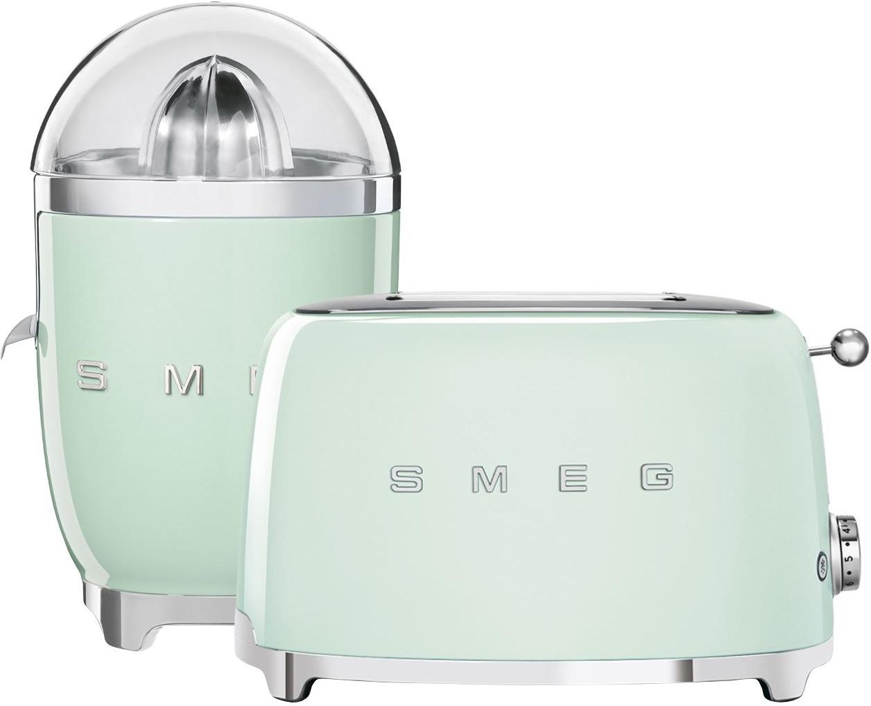 Zestaw śniadaniowy 50's Retro Style w kolorze zielonym. W zestawie wyciskarka CJF01 oraz toster TSF01. Doskonały do przygotowywania porannych posiłków z dodatkiem świeżego soku.