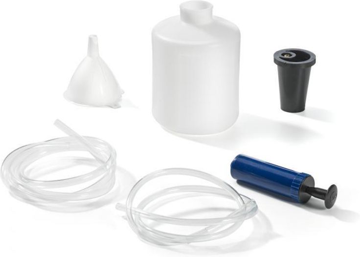 Stiga Zestaw do odsysania oleju i paliwa Zestaw podciśnieniowy z pompką ręczną do odsysania paliwa i oleju z silników spalinowych zastosowanych w urządzeniach ogrodniczych. Pojemność zbiornika na odessany olej / paliwo: 1,6 L.