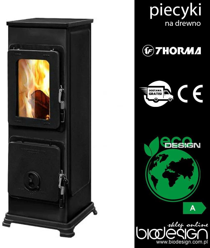 Klasyfikacja energetyczna A+ Moc nominalna 5,0 kW Moc regulowana 4,0 – 6,0 kW Powierzchnia grzewcza 40 – 60 m2 Funkcja grzewcza grzanie / dekoracja Sprawność > 78,2 % Średnica czopucha Ø 120 mm Zalecane ciśnienie komina 12 Pa +/- 2Pa Gwarancja 2 lata Średnica przyłącza powietrza brak Miejsce przyłącza powietrza – Waga 64 kg Thorma Bozen b – prosty piecyk kominkowy na drewno do walki z drogim gazem Piecyk wolnostojący Thorma Bozen b wykonany jest ze stali i żeliwa. Zewnętrzną obudowę Bozen wykonano z blachy pokrytej emalią. Żeliwne elementy kominka to drzwi i płyta górna. Bardzo solidna konstrukcja zapewnia bezawaryjną pracę przez wiele lat. Wnętrze wyłożone grubym szamotem. W razie konieczności można podgrzać garnek na górnej żeliwnej płycie. Zalety: – niska waga, – piec przenośny, – szybko oddaje ciepło do pomieszczenia, – łatwość obsługi dzięki ruchomemu rusztowi, – głęboki pojemnik na popiół z uchwytem, – sprawność 78.2%, – duża pojemność zasypowa komory spalania, – funkcjonalne, duże, szczelne drzwi, – łatwość utrzymania w czystości dzięki emaliowanej obudowie zewnętrznej, – akumuluje ciepło, dzięki wkładowi szamotowemu grubości 3,5 cm.