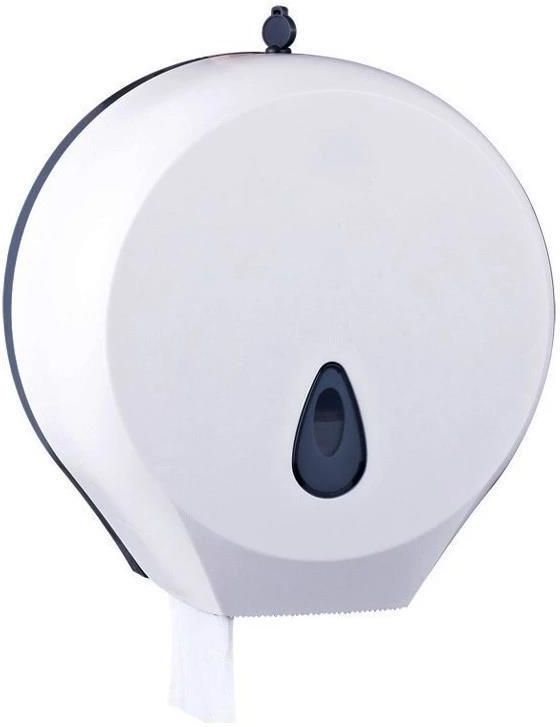 Podajnik papieru toaletowego jumbo szare okienko materiał: wytrzymałe tworzywo ABS kolor: biały, szare okienko kontrola: okienko zamykanie: kluczyk maksymalna średnica rolki: 25 cm wymiary: wysokość: 288 mm, szerokość: 278 mm, głębokość: 138 mm