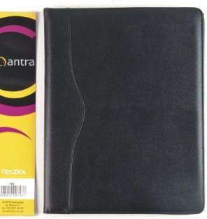 - teczka z przeszyciem - format A4 - wykonana ze skóry ekologicznej - zawiera klip i blok - kolor: czarny - wymiary: 25 x 34 cm.