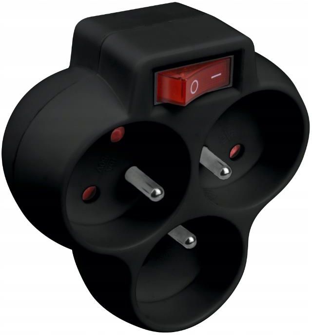 Rozgałęźnik sieciowy „złodziejka” z wyłącznikiem na 3 okrągłe gniazda z uziemieniem w kolorze czarnym. Model: P907B czarny Podstawowe cechy produktu Trzy okrągłe gniazda z uziemieniem Podświetlany wyłącznik Gniazda z przesłonami torów prądowych Napięcie maksymalne rozdzielacza 230V Obciążenie maksymalne rozdzielacza 16A ~ 3500W Do użytku wewnętrznego Rozgałęźnik sieciowy potocznie nazywany złodziejką to idealny dodatek w przypadku małej ilość gniazdek w pomieszczeniu. Umożliwia nam to podłączenie więcej niż jednego odbiornika elektrycznego do pojedynczego gniazdka sieci elektrycznej. Prosty i funkcjonalny rozdzielacz przystosowany do użytkowania w gniazdach z uziemieniem, umożliwia podłączenie trzech okrągłych wtyczek. Rozgałęźnik na wbudowany podświetlany wyłącznik zasilania gniazd. Dzięki niemu szybko wyłączysz wszystkie podłączone do rozdzielacza urządzenia, gdy z nich nie korzystasz. Jego minimalistyczny wygląd i prosta konstrukcja sprawdzi się doskonale w domu i w biurze. Stopień ochrony w oferowanym rozgałęźniku to IP20, który zabezpiecza nas przed dotknięciem elementów niebezpiecznych. Rozgałęźnik wyposażony jest w osłony otworów, które zmniejszają ryzyko porażenia prądem. Produkt spełnia europejskie normy CE.