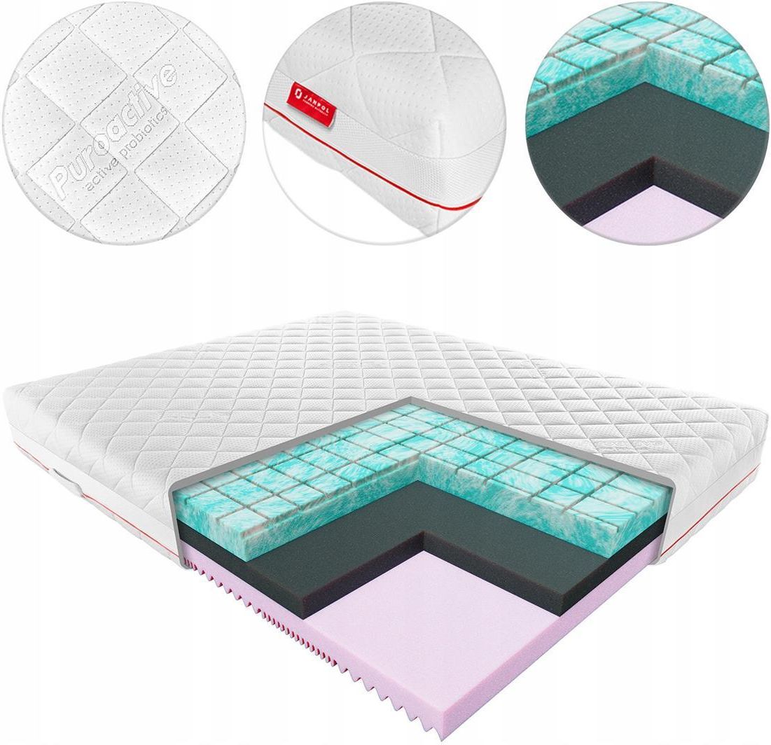 Materac lateksowy Ocean Blue z pianką HR, dwustronny. Wkład z pianki wysokoelastycznej HR (wys. 12 cm) obustronnie obłożony wartwą lateksu Ocean Blue (2 x 4 cm). Wysokość materaca: 22 cm Twardość materaca: średnio twardy. Skala twardości: 6 / 10 Zalety materaca: połączenie najwyższej jakości lateksu wykonanego w technologii Ocean Blue z pianką wysokoelastyczną typu HR bardzo dobre dopasowanie się do ksztatów ciała rdzeń z pianki HR gwarantuje pełne podparcie kręgosłupa na całej długości świetna cyrkulacja powietrza infuzowany cząstkami żelu lateks Ocean Blue znakomicie reguluje temperaturę podczas snu znakomita wentylacja materaca dzięki zastosowaniu taśmy 3D najwyższej jakości innowacyjny pokrowiec wykonany w technologii Celliant Sleep® podwójny zamek rozłączny ułatwiający zdjęcie i pranie pokrowca nowoczesny design pokrowca dzianina posiada Certyfi kat OEKO-TEX® Standard 100 Technologia Ocean Blue zastosowana we wkładach lateksowych to swoista innowacja. Zapewnia ona optymalną regulację temperatury ciała podczas snu. Infuzowany kapsułkami żelowymi lateks absorbuje wydzielane ciepło z organizmu, jednocześnie zmniejszajac ilość wilgoci wnikającej do wnętrza materaca. Materac nadaje się do stelaży regulowanych. Gwarancja na wkład: 7 lat Zamiast pokrowca standardowego, materac można zamówić bez dopłat w pozostałych pokrowcach specjalnych, których opisy można znaleźć TUTAJ Karta Gwarancyjna JANPOL
